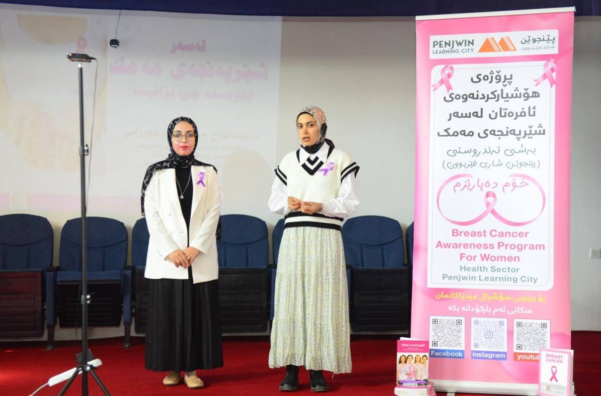 لە چوارچێوەی هەڵمەت و کارو چالاکییە بەردەوامەکانی پڕۆگرامی پێنجوێن شاری فێربوون بەهاوکاری و هاوبەشی بەڕێوەبەرێتی پەروەردەی پێنجوێن ئەمڕۆ ڕێکەوتی ٧-١١-٢٠٢٤ دوو سیمیناری تایبەت سەبارەت بەشێرپەنجەی مەمک لە هەریەک لە (ئامادەیی لەرێی تێکەڵاو و دواناوەندی بانوی کچان) لەلایەن هەریەک لە ڕاهێنەرانی خۆبەخشی پڕۆگرامی پێنجوێن شاری فێربوون (بینایی عومەر و سروە حسن و سارا باقی و سارا ٲحمد)ەوە پێشکەشکران. ئەم سیمینارانە سەرەتای دەستپێکێکی گرنگی بەرفراونە بە مەبەستی بڵاوکردنەوەی هۆشیاری خۆپاراستنی خانمانی سنوری شارۆچکەی پێنجوێن لە ئەگەری توشبوون بەشێرپەنجەی مەمک و ڕێگری لە خێرابڵاوبوونەوەی ئەم نەخۆشیە لە کەسی توشبوودا و دۆزینەوەی نیشانەکانی و پشکنینی پێشوەخەتە لەلایەن خودی خانمانی بەشداربووی سیمینارەکان، کە لەلایەن ڕاهێنەرەکانەوە بەشداربووان فێردەکرێن، بەشێوەیەکی زانستی و بەردەوام ئاگاداری بارودۆخی تەندروستی خۆیانبن