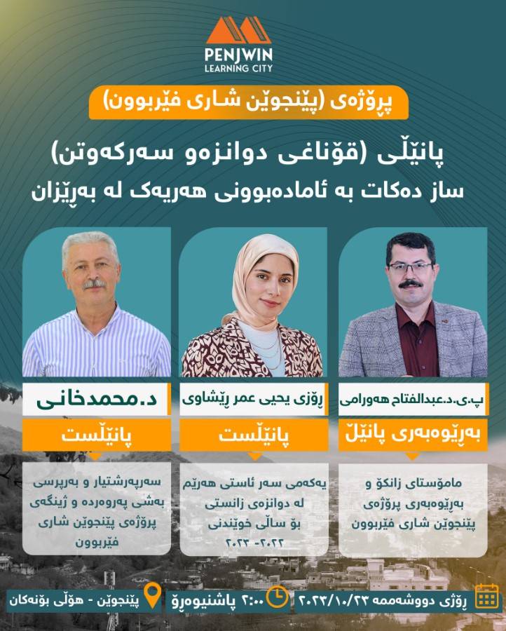 پڕۆگرامی (پێنجوێن شاری فێربوون) پانێڵی (قۆناغی دوانزەو سەرکەوتن) ساز دەکات بە ئامادەبوونی هەر یەک لە بەڕێزان (پرۆفیسۆر یاریدەدەر دکتۆر عەبدولفەتاح هەورامی) بەڕێوەبەری پانێڵ
