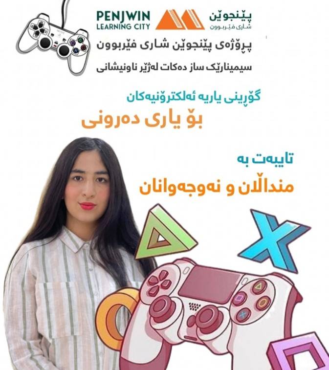 پڕۆگرامی پێنجوێن شاری فێربوون خولێکی فێربوونی کۆمپیوتەر دەکاتەوە بۆ مامۆستایان، فەرمانبەران، خوێندکاران، قوتابیان، چین توێژە جیاوازەکان.تێبینی:١- ئەم خولە لە لایەن مامۆستای شارەزا و بە ئەزمونەوە دەوترێتەوە.٢- فێرخواز پێویستە شارەزایی هەبێت لە بەکارهێنانی کۆمپیوتەر.٣- واباشترە فێرخواز لاپتۆپی تایبەت بە خۆیی پێبێت.ڕۆژانی ناوتۆمارکردن:لە بەرواری ١١ تاکو ١٤ی ١٢ی ٢٠٢٤ فێرخواز دەتوانێت لە ڕێگەی ئەم فۆڕمەوە ناو تۆمار بکات:https://forms.gle/sLn8jwHtvnegNih69یاخود لەڕێگەی ئەم ژمارە مۆبایلانەوە٠٧٥١٨٣٨٨٠٨٦٠٧٧٠٦٠١٠٤٠٤ئاست: سەرەتا تا پێشکەوتووماوەی خول: ١٠ ڕۆژکاتەکانی خول :بەیانیان : ٠٩:٠٠ بۆ ١٠:٣٠دوای نیوەڕوان:٠١:٣٠ بۆ ٠٣:٠٠سوودمەندان: مامۆستایان، فەرمانبەران، خوێندکاران، قوتابیان، چین توێژە جیاوازەکان.ڕۆژانی خول: یەک شەممە تا پێنج شەممە.ڕۆژی دەستپێک: یەک شەممە. بەرواری: ١٥- ١٢- ٢٠٢٤کۆتایی: ٢٦- ١٢- ٢٠٢٤شوێن: کتێبخانەی گشتی پێنجوێن - نهۆمی دووەم.