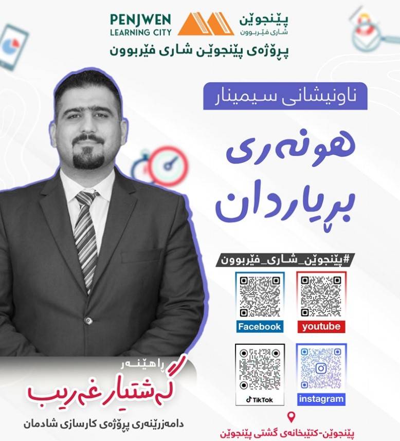 زیرەکی سۆزداری و کاریگەریەکانی لەبواری بەڕێوەبردندا.. لە کاتێکدا زۆربەی بەڕێوەبەران و کارمەندان گرنگی بە لێهاتوویی تەکنیکی دەدەن، دوو کەسایەتی دیاری بواری دەروونناسی و کارگێڕی، پ.ی.د. محمدی خانی و پ.ی.د. عبدالفتاح هەورامی، لە سیمینارێکی تایبەتدا پەردەیان لەسەر نهێنی سەرکەوتنێکی گەورەتر لادا - زیرەکی سۆزداری. لەم سیمینارە دەوڵەمەندەدا، کە وەک پردێک وابوو لە نێوان زانست و هونەری بەڕێوەبردندا، بەشداربووان فێری ئەوە بوون چۆن هەستەکانیان بەشێوەیەکی کاریگەر بەکاربهێنن بۆ بەرزکردنەوەی ئاستی کارایی و داهێنان لە ژینگەی کارکردندا." تێبینی : سوپاسی بێ پایان بۆ بەڕێوەبەرایەتی پەروەردەی پێنجوێن کە هەمیشە هاوکار و هەماهەنگ بوون و هەمووکات بەدەم خزمەتی زیاتری کەرتی پەروەردەوەبوون هاوکاتیش پاڵپشتیەکی گەورە و کاریگەری پڕۆژەی پێنجوێن شاری فێربوونن.