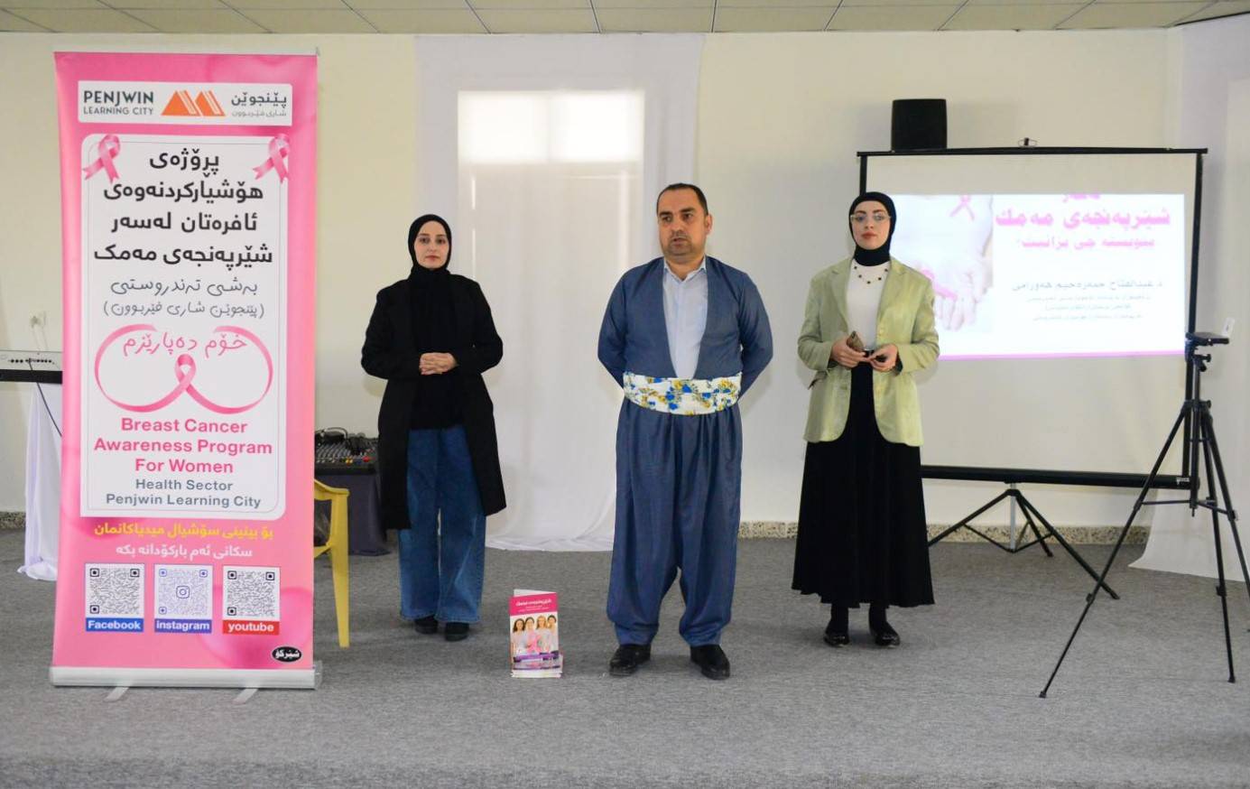 #11 #12 لە چوارچێوەی هەڵمەت و کارو چالاکییە بەردەوامەکانی پڕۆژەی پێنجوێن شاری فێربوون بەهاوکاری و هاوبەشی بەڕێوەبەرێتی پەروەردەی پێنجوێن ئەمڕۆ ڕێکەوتی ٧-١١-٢٠٢٤ دوو سیمیناری تایبەت سەبارەت بەشێرپەنجەی مەمک لە هەریەک لە (ئامادەیی لەرێی تێکەڵاو و دواناوەندی بانوی کچان) لەلایەن هەریەک لە ڕاهێنەرانی خۆبەخشی پڕۆژەی پێنجوێن شاری فێربوون (بینایی عومەر و سروە حسن و سارا باقی و سارا ٲحمد)ەوە پێشکەشکران. ئەم سیمینارانە سەرەتای دەستپێکێکی گرنگی بەرفراونە بە مەبەستی بڵاوکردنەوەی هۆشیاری خۆپاراستنی خانمانی سنوری شارۆچکەی پێنجوێن لە ئەگەری توشبوون بەشێرپەنجەی مەمک و ڕێگری لە خێرابڵاوبوونەوەی ئەم نەخۆشیە لە کەسی توشبوودا و دۆزینەوەی نیشانەکانی و پشکنینی پێشوەخەتە لەلایەن خودی خانمانی بەشداربووی سیمینارەکان، کە لەلایەن ڕاهێنەرەکانەوە بەشداربووان فێردەکرێن، بەشێوەیەکی زانستی و بەردەوام ئاگاداری بارودۆخی تەندروستی خۆیانبن