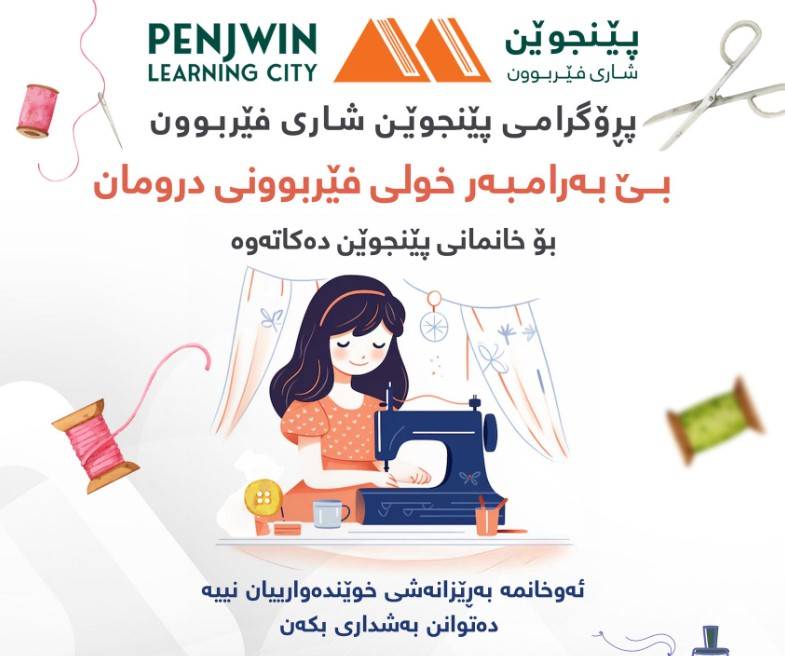 پڕۆژەی پێنجوێن شاری فێربوونبەمەبەستی پێشخستنی تواناکانی خانمان، هەڵدەستێت بەکردنەوەی خولی فێربوونی سەرەتایی تایبەت بە (چنین بەشێوازی ئەتەمین "پەنج نیدڵ" و چنینی شلیلە) بێبەرامبەر بۆخانمانی بەڕێزی پێنجوێن، ئەم خولە لە لایەنمامۆستای شارەزا و بە ئەزمونەوە دەوترێتەوە، لە بەرواری ٣-١١-٢٠٢٤ ڕۆژی یەک شەممە دەست پێدەکات و(١٠) ڕۆژ دەخایەنێتلەکۆتایی خولەکەدابڕوانامەی بەشداربوون دەبەخشرێتە فێرخوازە بەڕێزەکان.تێبینی:ئەوخانمانەشی خوێندەواریان نییە دەتوانن بەشداری بکەنڕۆژانی ناوتۆمارکردن:لە بەرواری ٣١ی ١٠ی تاکو ٢ی ١١ی ٢٠٢٤ فێرخواز دەتوانێت لە ڕێگەی ئەم فۆڕمەوە ناو تۆمار بکات:https://forms.gle/8VzkuiPBELjpGdqF7یاخود لەڕێگەی ئەم ژمارە مۆبایلانەوە٠٧٥١٨٣٨٨٠٨٦٠٧٧٠٦٠١٠٤٠٤کاتەکانی خول :بەیانیان : ٠٩:٠٠ بۆ ١٠:٣٠دوای نیوەڕوان:٠١:٣٠ بۆ ٠٣:٠٠شوێن:کتێبخانەی گشتی پێنجوێن - نهۆمی دووەم