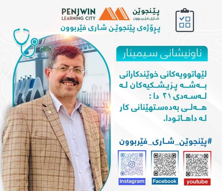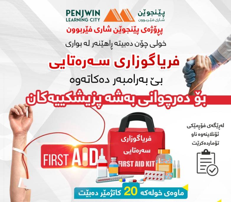 ئەم خولە تایبەتە بە دەرچوانی بەشە پزیشکیەکانپڕۆژەی#پێنجوێن_شاری_فێربوونخولێکی تایبەت بە بوون بە (ڕاهێنەری فریاگوزاری سەرەتایی) بێ بەرامبەر دەکاتەوە بۆهەردوو ڕەگەز, کەماوەکەی (٢٠) کاتژمێر دەخایەنێت و لە لایەنپڕۆفیسۆری یاریدەدەر بەڕێز (دکتۆر عبدالفتاح حمەرحیم هەورامی)ەوە دەوترێتەوە،کاتی وانە:سێ ڕۆژ دەبێت لە سێ هەفتەی جیاوازدا و ڕۆژانە لە کاتژمێر (٩ بۆ ٥)ی سەرلەئێوارەدەبێت.بـــهشـــداربـــوو چى بهدهست دههــێــنــێــت دواى تهواوكردنى خــولــهكــه:وهرگرتنى بڕوانامهى تایبهت بهبوون بهڕاهێنهر لهبوارى فریاگوزارى سهرهتایی.وهرگرتنى پاكێجێكى تایبهت به بوون بهڕاهێنهر لهبوارى فریاگوزارى سهرهتایی.ئاشنابوون بهههموو لێهاتوویه پێویستهكانى تایبهت بهڕاهێنان.زانیاری و تێگهیشتن و كارامهیی پێویست لهسهر بواره جیاوازهكانى فریاگوزارى سهرهتایی.ئاشنابوون لهسهر بهڕێوهبردنى خولى ڕاهێنان و شێوازى بهكارهێنانى پاكێجى تایبهت بهفریاگوزارى سهرهتایی.پێویستە بەشداربوو ئەم مەرجانەی تێدابێت:پێویستە دەرچوی بەشە پزیشکیەکان بێت.پابەندبێت بەماوەی خولەکە کە 20 کاتژمێرە، ئەگەر تەنها (٤) کاتژمێر ئامادە نەبێت لەو ماوەیەی دیاریکراوە ئەوە ئەوکەسە مافی بەشداری کردنی لەخولەکەدا لەدەست دەدات.دوای تەواوبوونی خولەکە پێویستە بەشداربوو بەڵێننامە بدات کە ببێتە ڕاهێنەری پڕۆژەی#پێنجوێن_شاری_فێربوون، بەجۆرێک مانگانە یەک خول بکاتەوە.ناو تۆمارکردن لە بەرواری ٢٨ - ٨ تا ٣ - ٩ -٢٠٢٤ بەردەستە لەڕێگەی ئەم فۆڕمە ئۆنلاینەوە:https://docs.google.com/.../1FAIpQLSfNSnbEddnbm0.../viewformتێبینی: لەڕێگەی کردنەوەی ئیمەیڵی خۆتەوە داخڵی ئەم فۆڕمە دەبیتیاخود دەتوانن پەیوەندی بکەن بەم ژمارە مۆبایلانەوە:٠٧٧٠٦٠١٠٤٠٤٠٧٥٠٦٠١٠٤٠٤